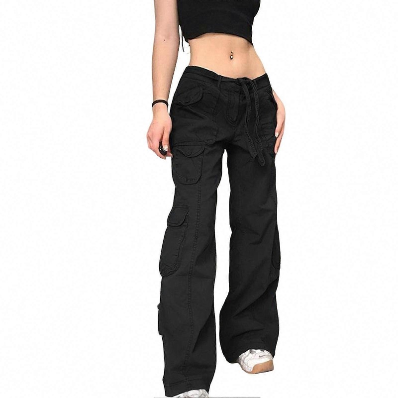 2. Fashion Design: Solid color high-waisted loose-fitting long cargo pants with multiple pockets simple and fashionable practical and trendy will not go out of style.