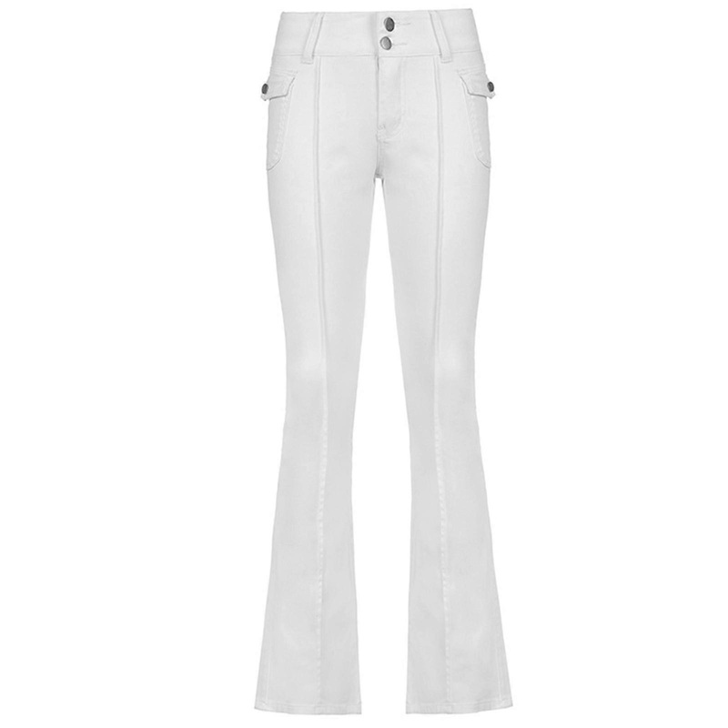 Women Sexy Low Waist Flare Pants Striped Retro Side Pocket Button Slim Trousers White S | Fruugo SG