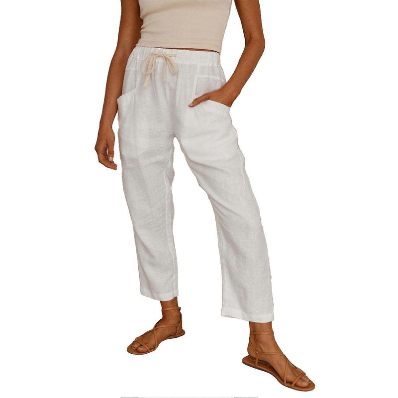 1Tapered Ankle: The tapered leg design ensures a flattering fit for all body types. The timeless design helps you slim down your legs and make your calves look slimmer. 2Adjustable Fit: With drawstring waistband design, which allows for a customizable fit to ensure maximum comfort and easy adjustments on the go. 3Side Pockets: Women tapered pants come with pockets on both sides and you can also put some small items in them, such as keys, credit cards, wallets, etc. 4Versatile Wear: Perfect for a variety of scenes, these pants can be dressed up or down. Wear them to work, on a date, or even while running errands. 5Excellent Material: Made with polyester materials that will withstand everyday wear and tear, making them a long lasting addition to your wardrobe.