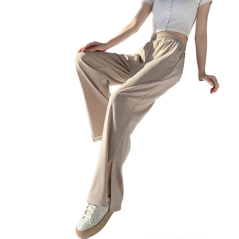 Description ["Features:\nbrand new and high quality\nHigh waisted, wide elastic waistband, casual pull-on closure, simple solid color, ribbed striped, loose fitting.\nWide leg long trousers, side split design at hem, slightly flare flowy hemline, makes you