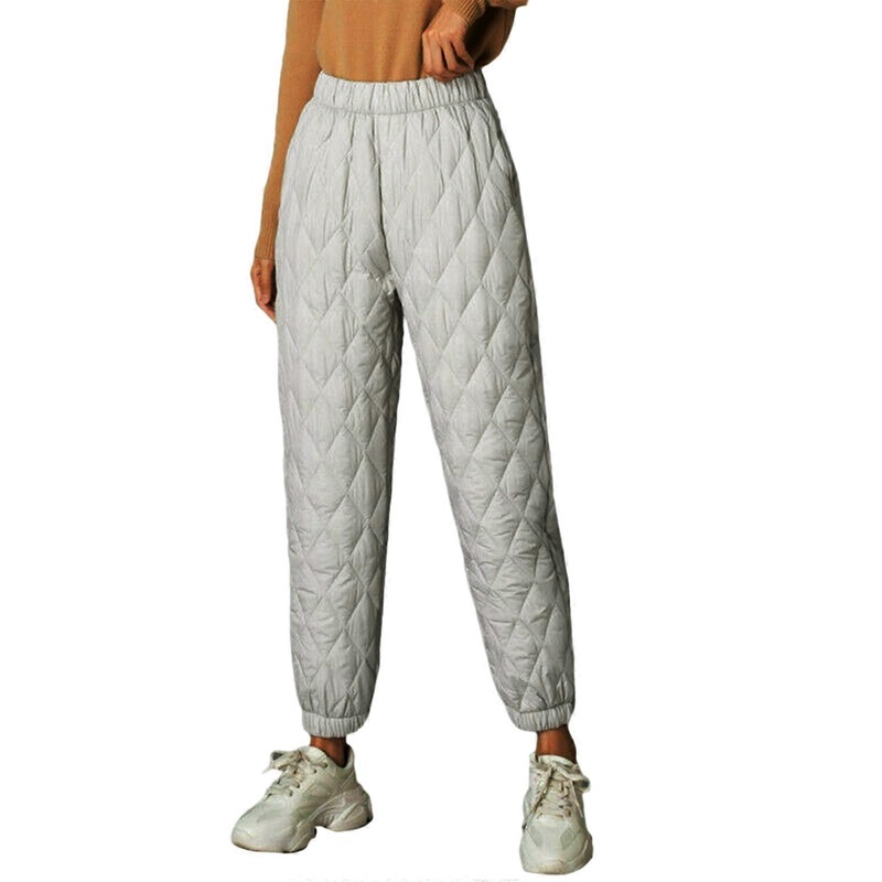 Women Winter Puffy High Waist Down Cotton Pants Quilted Diamond Jogger Sweatpant White XL | Fruugo SG