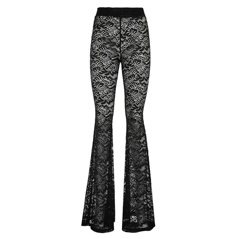 Description Features: Embraces the gothic charm with these high waist flared bottom pants, feature a seductive see through lace that set you apart from the crowd. Crafts from soft polyester lace, these trousers offer both comfort and breathability, while t