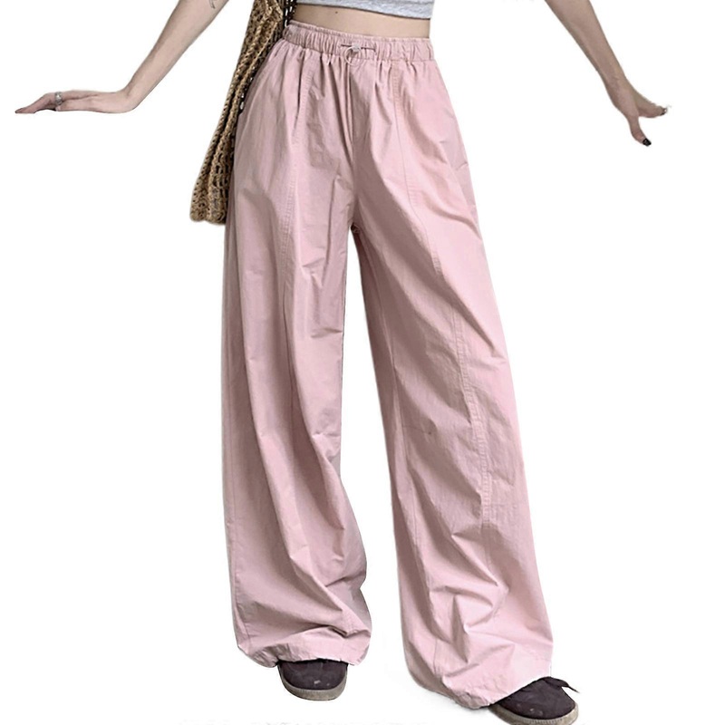 Womens Drawstring Elastic Waist Loose Parachute Pants Casual Pocketed Solid Color Cargo Pants Trousers with Pockets Pink L | Fruugo SG