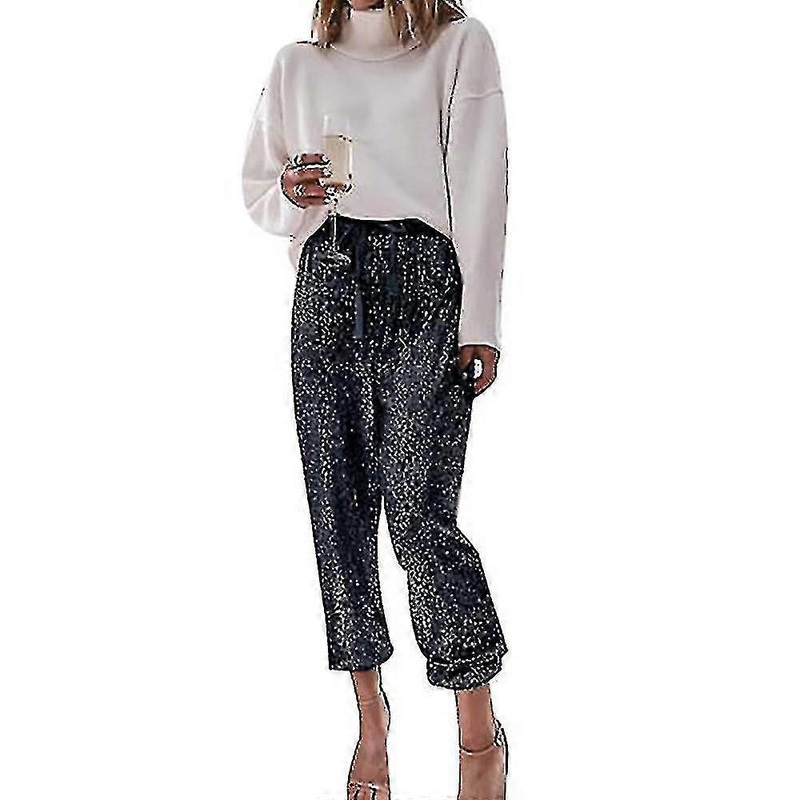 Feature: Sequined, Elastic High Waist, Elastic hem, Stretch, Flare OverallJogger Pants