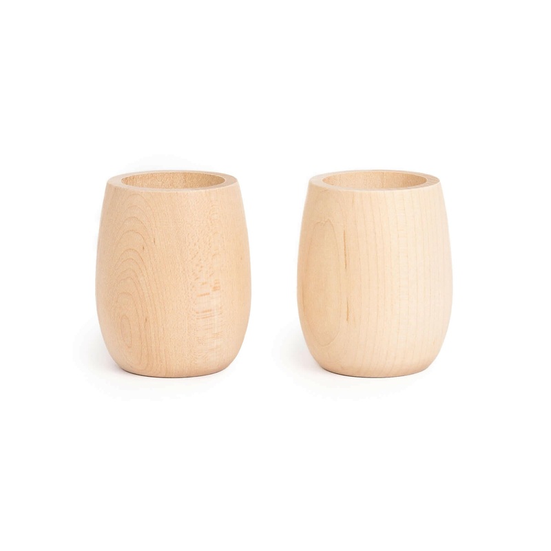 Perfectly sized for little hands, these wood play cups are ideal for serving up pretend smoothies, sharing tea parties, or sipping a make-believe beverage of their choice. This set includes two cups and brings an extra touch of whimsy to playtime. Get ready for a feast of creativity and endless fun in the kitchen!