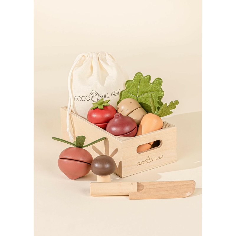 Children love to play pretend. The Wooden Vegetable Playset is perfect on its own or combined with pretend play modules, such as the Mini Wooden Play Market Stand and the Mini Wooden Play Kitchen.
